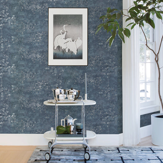 2903-25857 Alannah Navy Botanical Wallpaper Blue Bell By A Street Prints