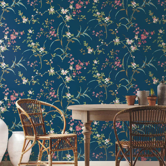 4074-26611 Fernback Blue Ornate Botanical Wallpaper