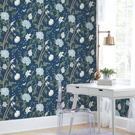 Getty Navy Jungle Damask Wallpaper by Scott Living