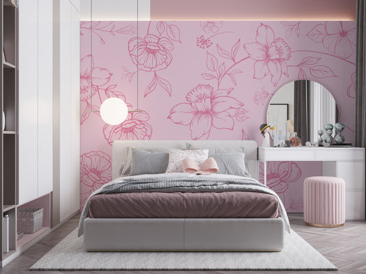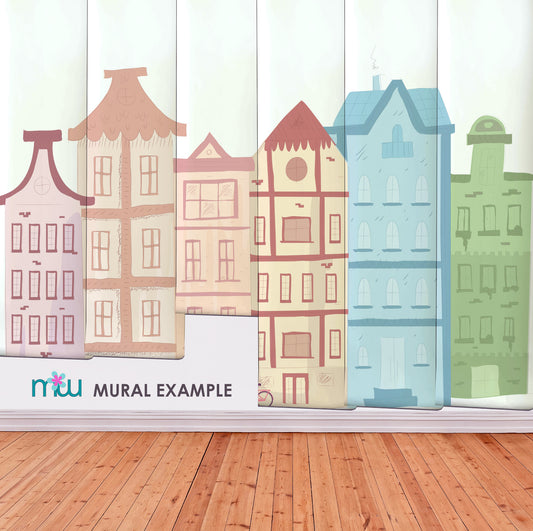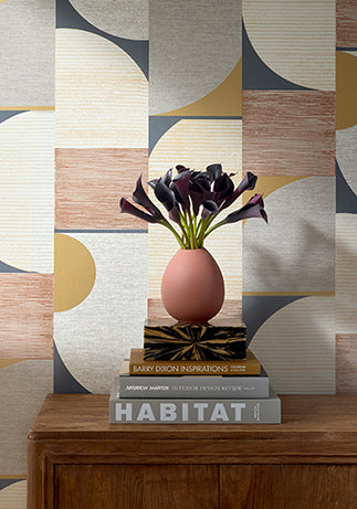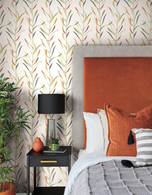 Off White/Green/Pink Marketplace Motif Wallpaper