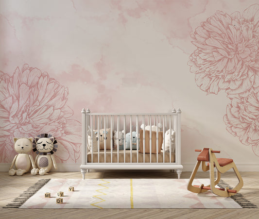 RI5190M Cream/Bright Pink Garden Party Wallpaper Mural