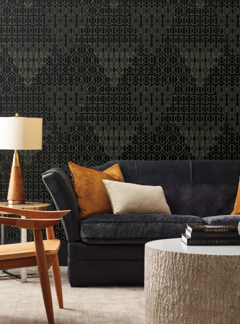 Sold outSpa Blue/Gold All Lined Up Wallpaper