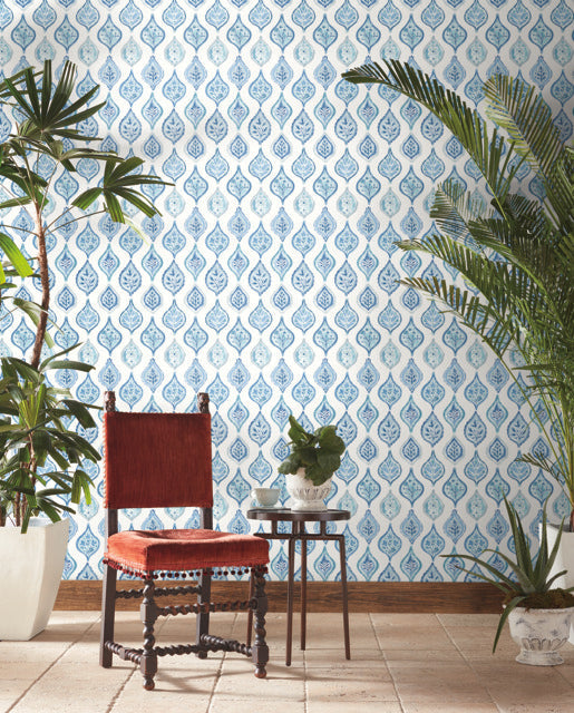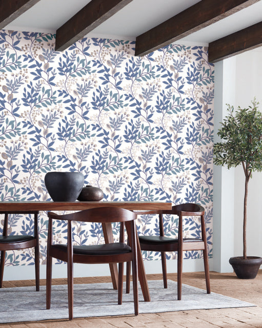 White/Blue Eden Retreat Wallpaper