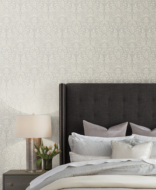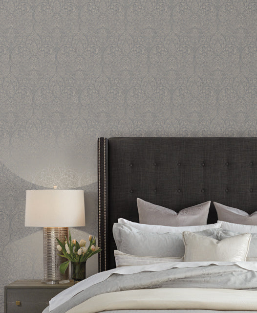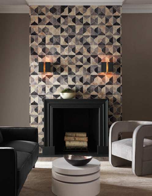 Black/Taupe/Grey Burlwood Ogee Wallpaper