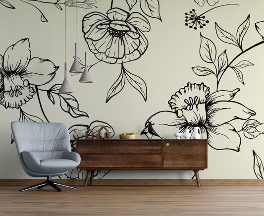 Black and white Floral wallpaper Mural