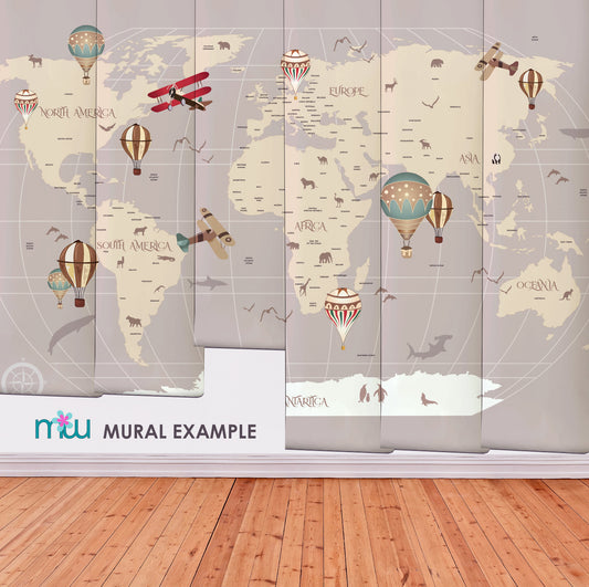Kids Worldmap wallpaper mural beige