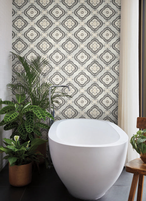 Black/Grey Garden Trellis Onyx Wallpaper