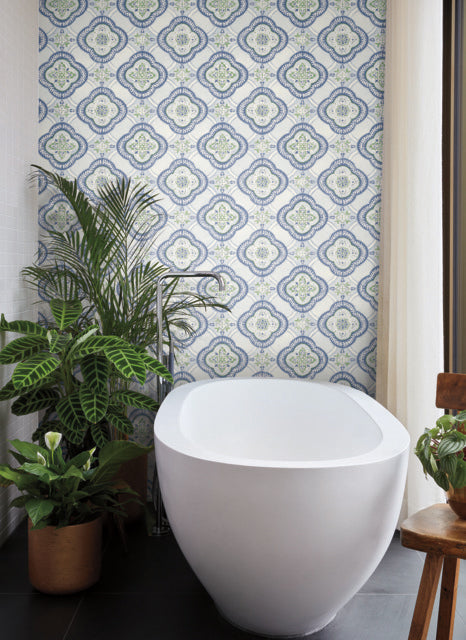 Blue Garden Trellis Cobalt Wallpaper