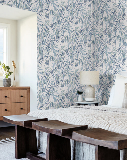 Grey/Blue Lotus Pond Heather/Cotton Wallpaper