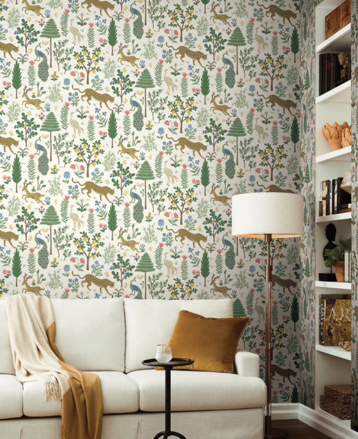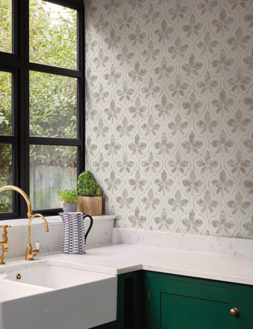Green/Beige Jasmine Eucalyptus Wallpaper