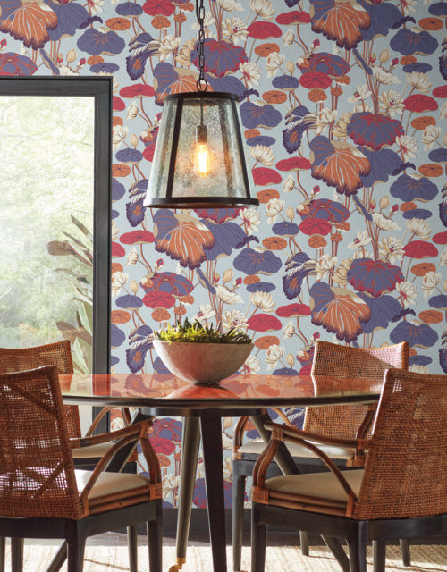Purple/Pink Lotus Pond Sky/ Multi Wallpaper