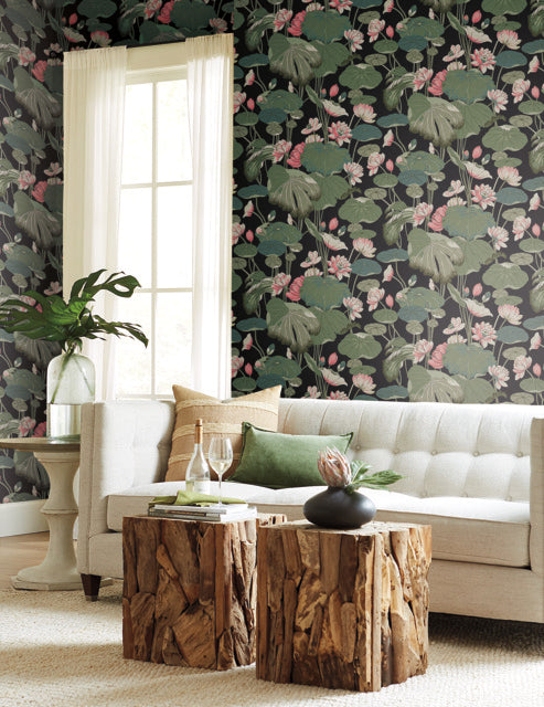 Black/Pink Lotus Pond Midnight/Flamingo Wallpaper