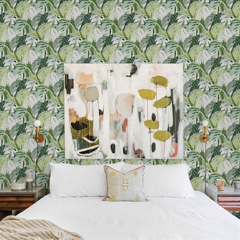 2969-26006 Samara Green Monstera Leaf Wallpaper by Brewster