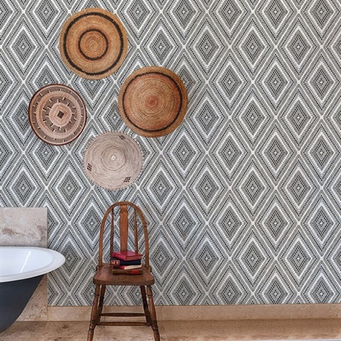 2969-26012 Zaya Black Tribal Diamonds Wallpaper by Brewster