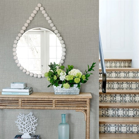 2903-24119 Exhale Grey Faux Grasscloth Wallpaper Blue Bell By A Street Prints