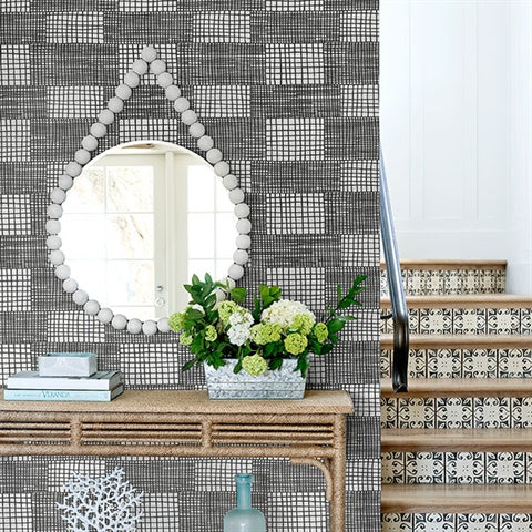 2903-25824 Maxwell Black Geometric Wallpaper Blue Bell By A Street Prints