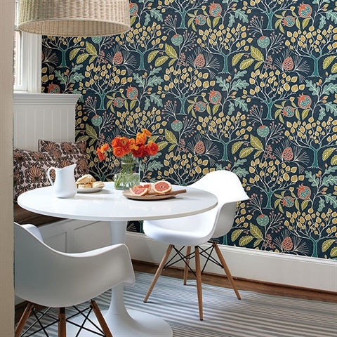 2903-25857 Alannah Navy Botanical Wallpaper Blue Bell By A Street Prints