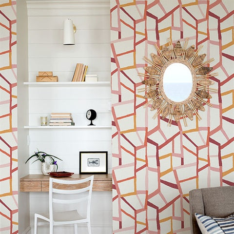 2903-25846 Tate Pink Geometric Linen Wallpaper Blue Bell By A Street Prints