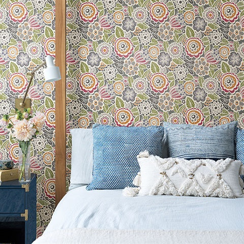 2903-25865 Lucy Multicolor Floral Wallpaper Blue Bell By A Street Prints