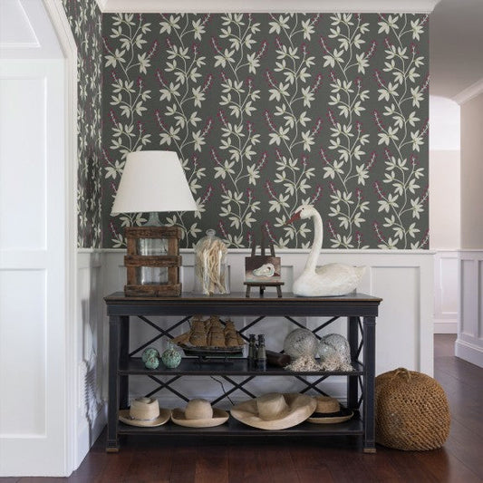 2901-25439 Linnea Elsa Charcoal Botanical Trail Wallpaper
