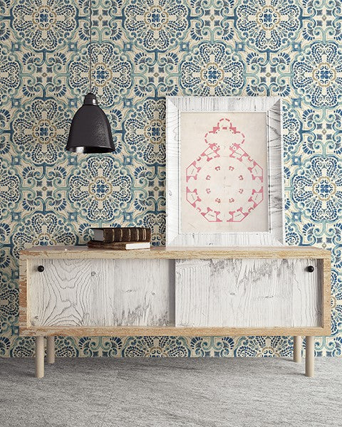 Florentine Blue Tile Wallpaper