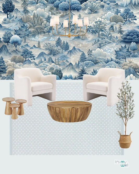 BRENTWOOD SKY BLUE PALM LEAVES WALLPAPER