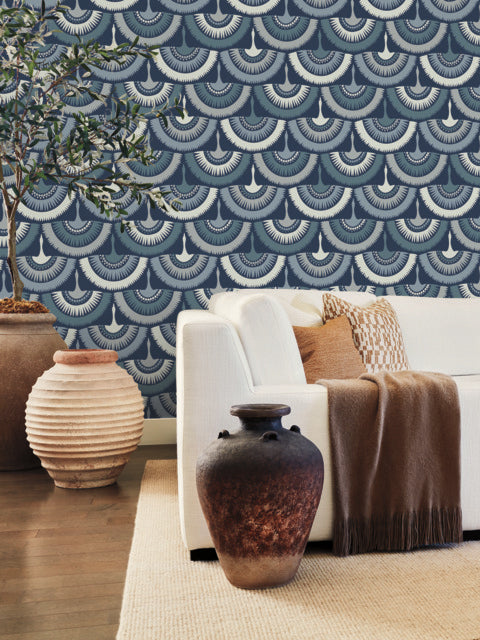 Birds’ graceful; winged silhouettes inspire the open fan shape of pattern Feather and Fringe.