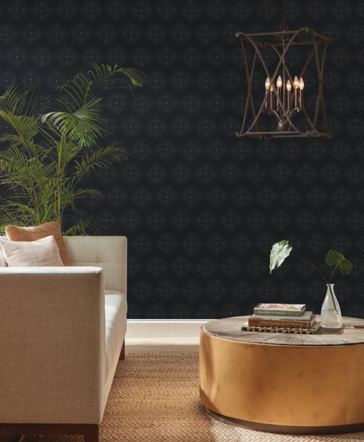 Metallic dots create a halo of warm shimmer in pattern Starlight’s stylized center star motif.