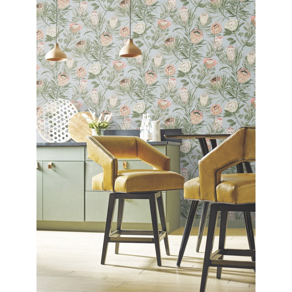 Protea Wallpaper Light Blue