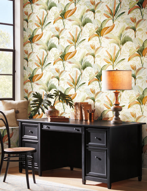 The swaying leaves of tropical palm trees bring to life the luxury of living by the water’s edge in pattern Summerhouse.