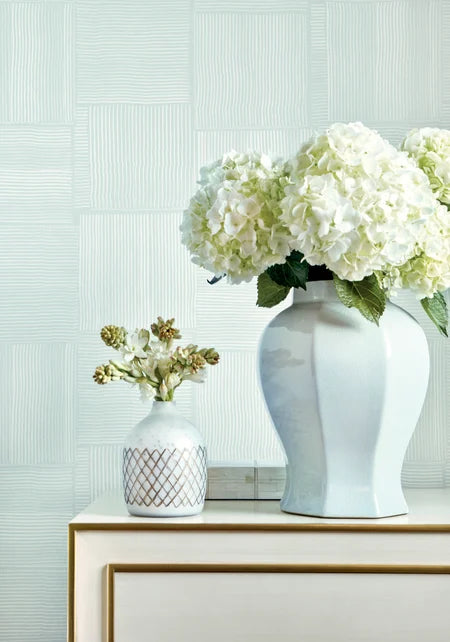 Graceful parallel lines create large blocks in this screen-printed pattern. Subtle toning and graphic accent lines run throughout this refined design.