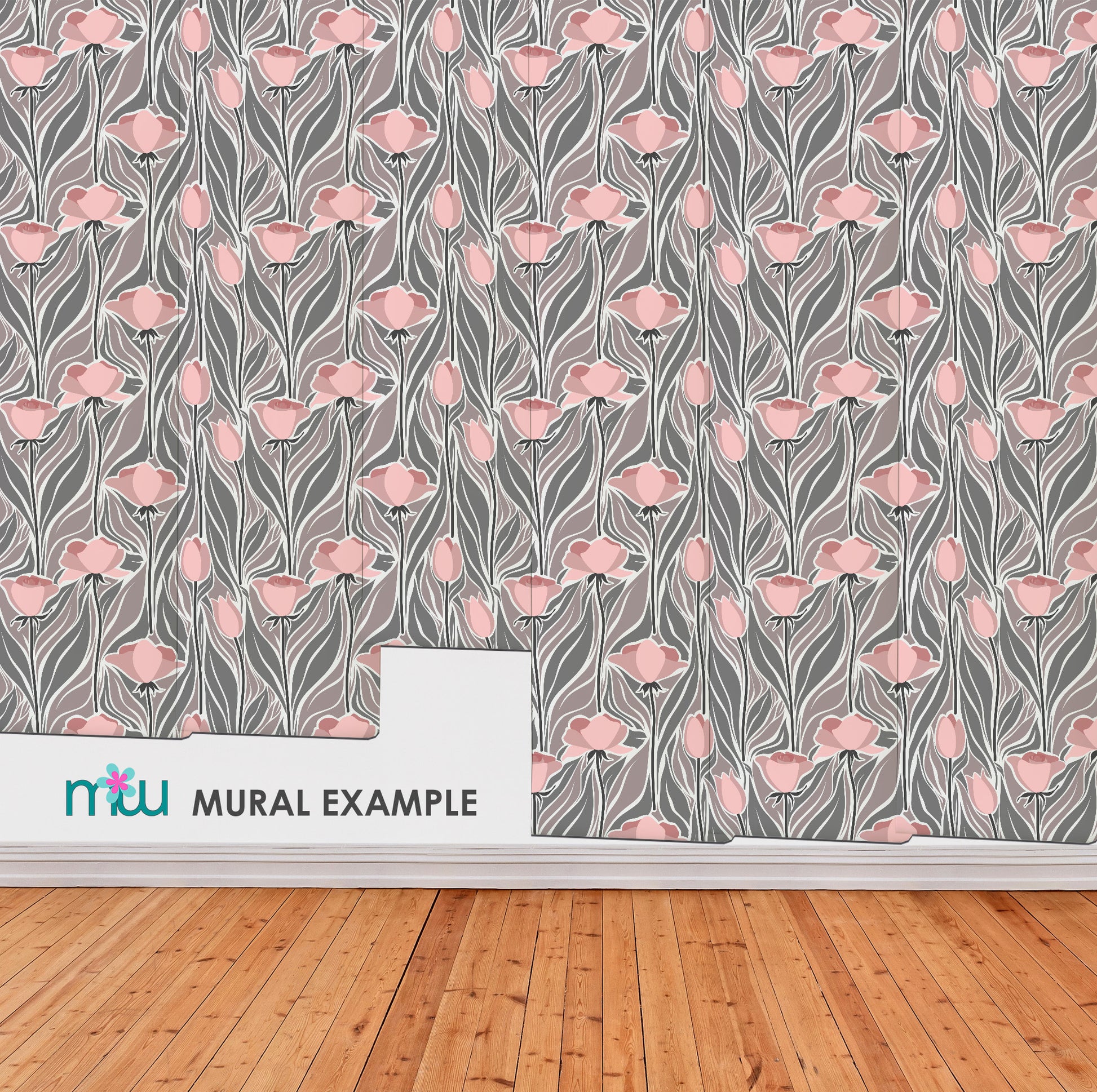 Pink Grey floral wallpaper