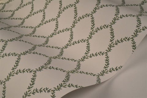 Laurel from Rifle Paper Co. features arbors of delicate leaves arc across a solid background. creating a pattern with a timeless feel.