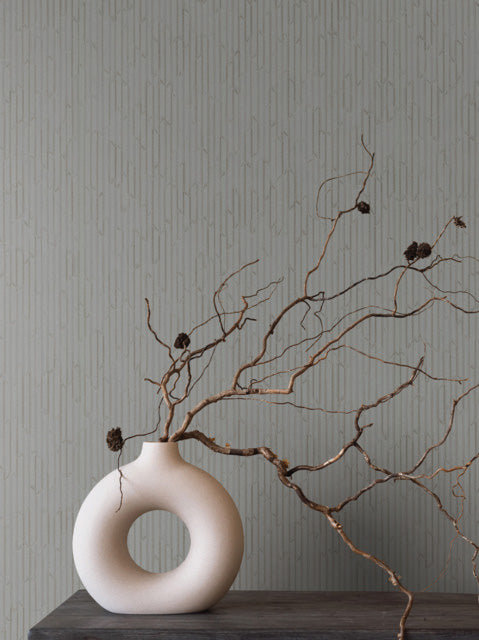 The diagonal pipes of a mechanical steam organ inspire the wide wales and diagonal slashes of the pattern Calliope; shown in pearlescent taupe brown. This Calliope Wallpaper measures approximately 26 inches wide by 30 feet long; measuring approximately 65 square feet per roll. Designed for function; industrial manufacturing?s unmistakable elements evolve to become the distinctive characteristics of a new philosophy of informal; modern sophistication of style.