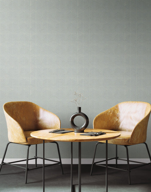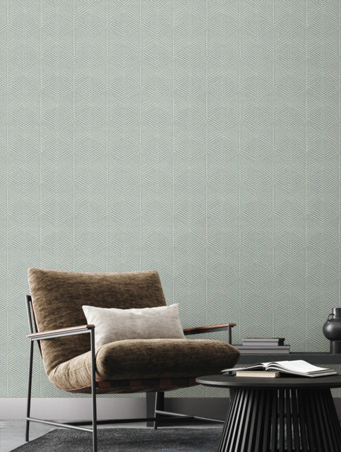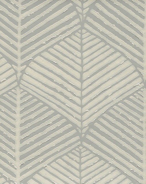 Wide palm frond silhouettes create an allover pattern in mirrored veins and leaves with a raised texture that defines the design of Universal Nature; foogn in raised fog green. This Universal Nature Wallpaper measures approximately 27 inches wide by 27 feet long; measuring approximately 60.8 square feet per roll. Designed for function; industrial manufacturing?s unmistakable elements evolve to become the distinctive characteristics of a new philosophy of informal; modern sophistication of style.